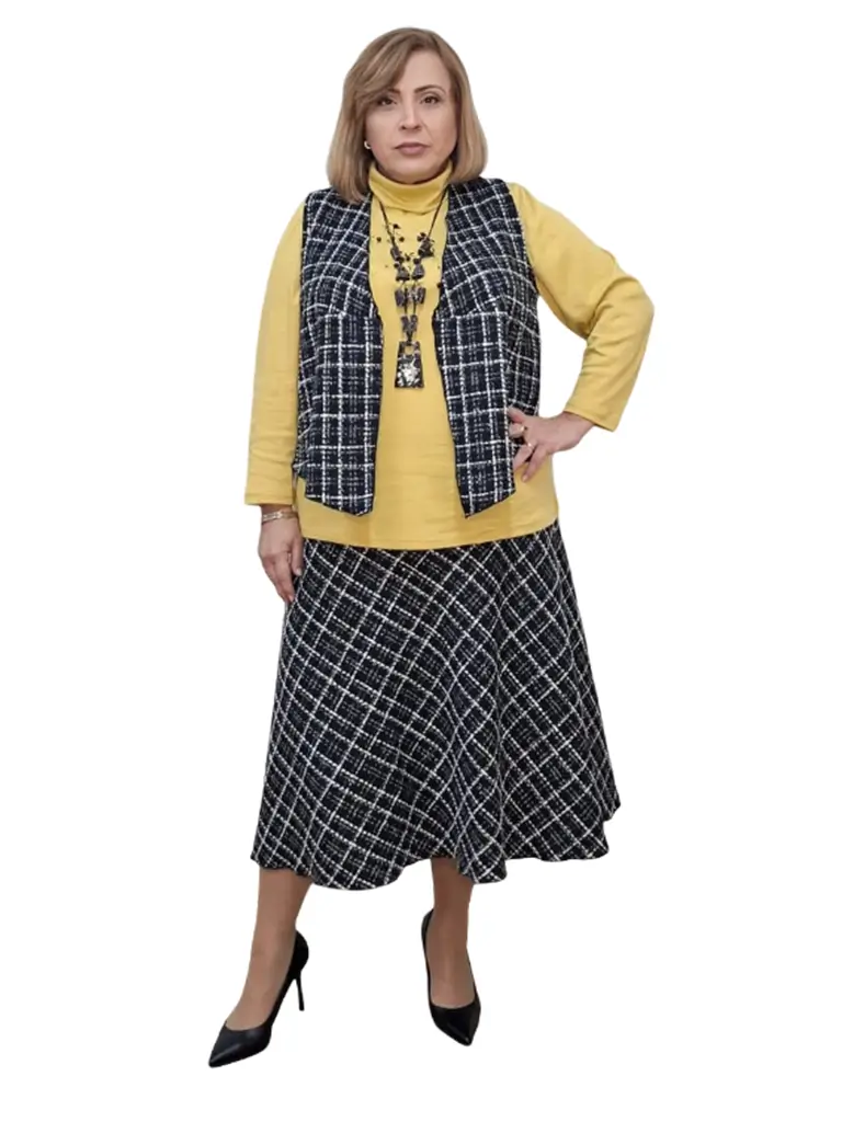 Compleul MARGARET este o alegere rafinată pentru femeia care apreciază eleganța clasică și detaliile de calitate. Realizat din stofă plină tip Chanel, cu un fir argintiu discret, ansamblul inspiră stil și feminitate. Fusta cloche, complet căptușită, se așază impecabil și avantajează orice tip de siluetă, oferind fluiditate și lejeritate. Vesta adaugă structură și un plus de noblețe, conturând armonios linia corpului. Împreună, cele două piese creează un look sofisticat, versatil și modern, potrivit atât pentru evenimente elegante, cât și pentru ținute speciale de zi. Compleul MARGARET este expresia eleganței atemporale.