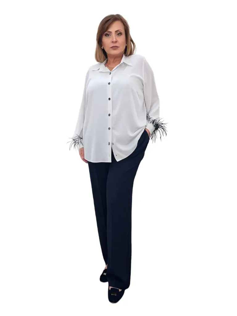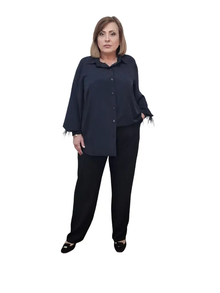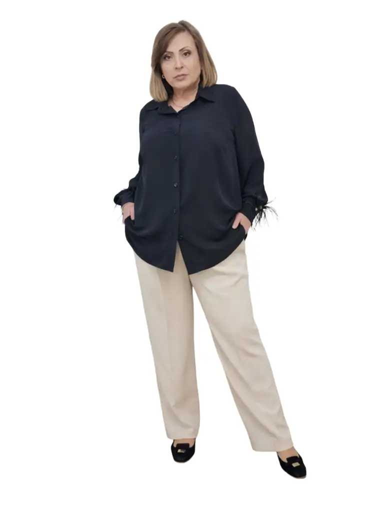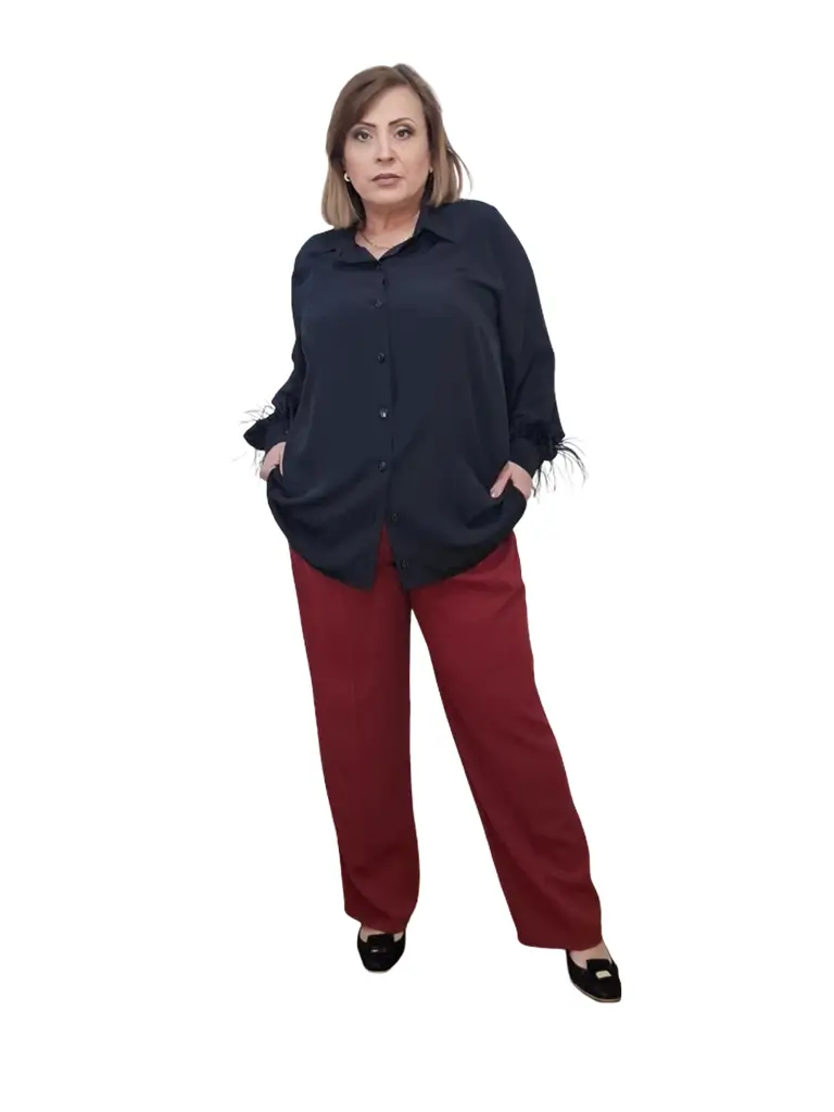 Pantalonii P75 sunt realizați din stofă fină și subțire tripluvoal, un material de calitate care oferă confort, eleganță și o cădere impecabilă. Modelul are un croi clasic, evidențiat de dungă, care alungește vizual silueta și oferă un aspect rafinat. Sunt prevăzuți cu buzunare cu fermoar, practice și discrete, iar talia este prevăzută cu elastic pentru un plus de confort și adaptare perfectă pe corp. De asemenea, pantalonii au găici pentru curea, permițând diferite stiluri de purtare. Pantalonii P75 sunt ideali atât pentru ținute elegante, cât și pentru combinații smart-casual, fiind o piesă versatilă și ușor de integrat în garderoba feminină.