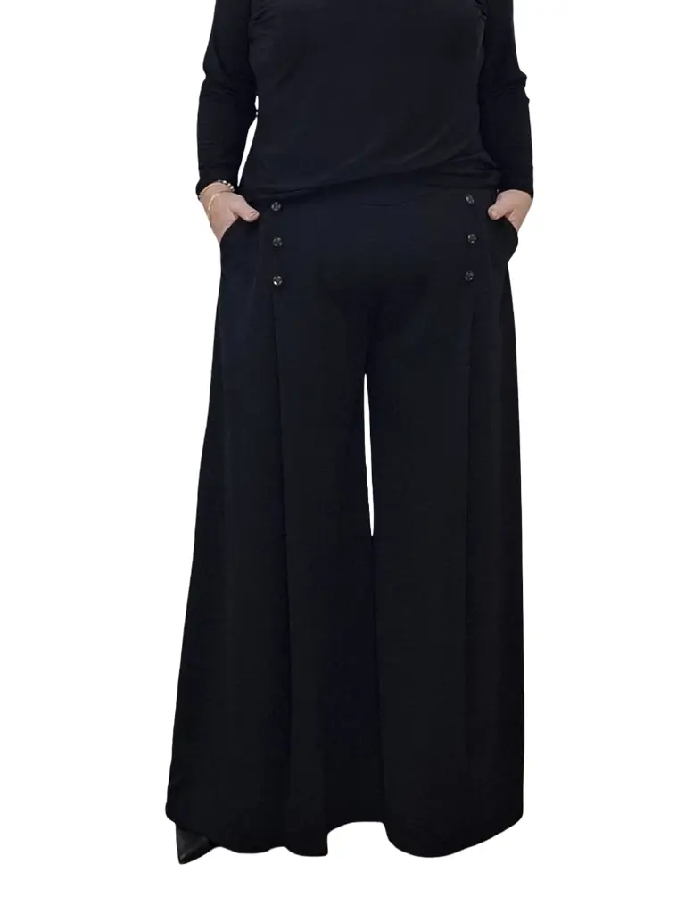 Pantalonii Vanessa sunt definiția eleganței moderne, combinând confortul pantalonilor cu fluiditatea unei fuste. Realizați într-un croi amplu, tip fustă-pantaloni, aceștia oferă libertate de mișcare și o siluetă sofisticată. Materialul de calitate se așază frumos pe corp, creând o linie elegantă și rafinată, potrivită pentru orice tip de siluetă, inclusiv mărimi mari. Talia este concepută pentru confort, iar designul versatil permite integrarea lor atât în ținute office, cât și în combinații elegante de seară. Pantalonii Vanessa sunt alegerea ideală pentru femeia care apreciază echilibrul perfect între eleganță, lejeritate și stil contemporan.