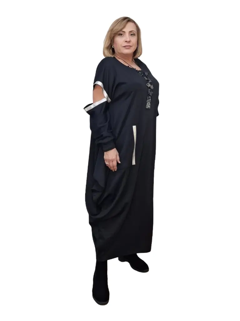 Rochia FLAVIA este realizată dintr-un jerseu deosebit, cu vâscoză în compoziție, un material moale, plăcut la atingere și extrem de confortabil. Textura fluidă se așază frumos pe siluetă, iar elasticitatea discretă oferă libertate de mișcare, făcând rochia ideală pentru purtare zilnică. Croiul în stil boho adaugă un aer relaxat, feminin și modern, avantajos pentru toate tipurile de siluetă, inclusiv mărimi mari. Liniile lejere și căderea naturală a materialului creează un look echilibrat, expresiv și ușor de purtat. Rochia FLAVIA este alegerea perfectă pentru femeia care își dorește o combinație armonioasă între confort, naturalețe și stil boem contemporan.