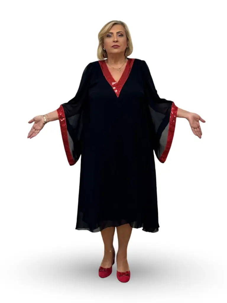 Rochia Roxana este o piesă spectaculoasă, creată pentru a pune în valoare feminitatea prin eleganță și detalii atent alese. Confecționată din voal cu vâscoză și o ușoară elasticitate, este căptușită cu relon fin, asigurând confort și o cădere fluidă. Garnisită cu paiete aplicate în ton sau contrast, adaugă o notă chic și sclipitoare. Anchiorul său avantajează silueta, oferind un efect mai suplu și sexy, în timp ce mânecile cu croi deosebit atrag toate privirile. Cu o lungime de 110 cm, rochia este perfectă pentru evenimente, seri speciale sau ocazii unde eleganța este esențială.
